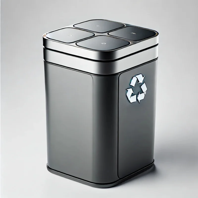 A modern trash can with a recycling function. Made from durable materials, featuring a convenient opening system. Perfect for kitchens or offices.